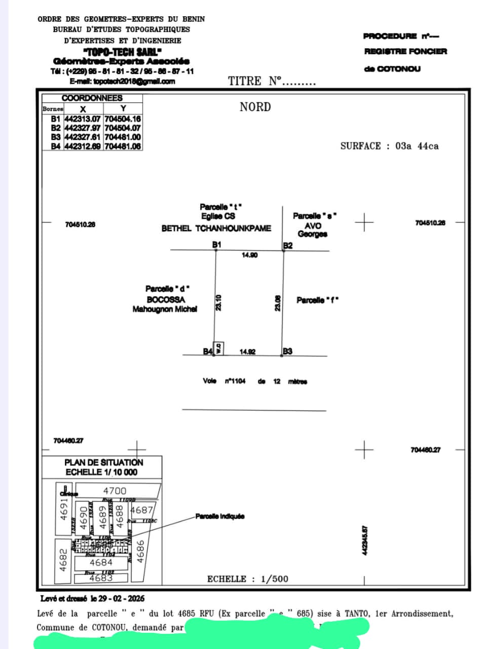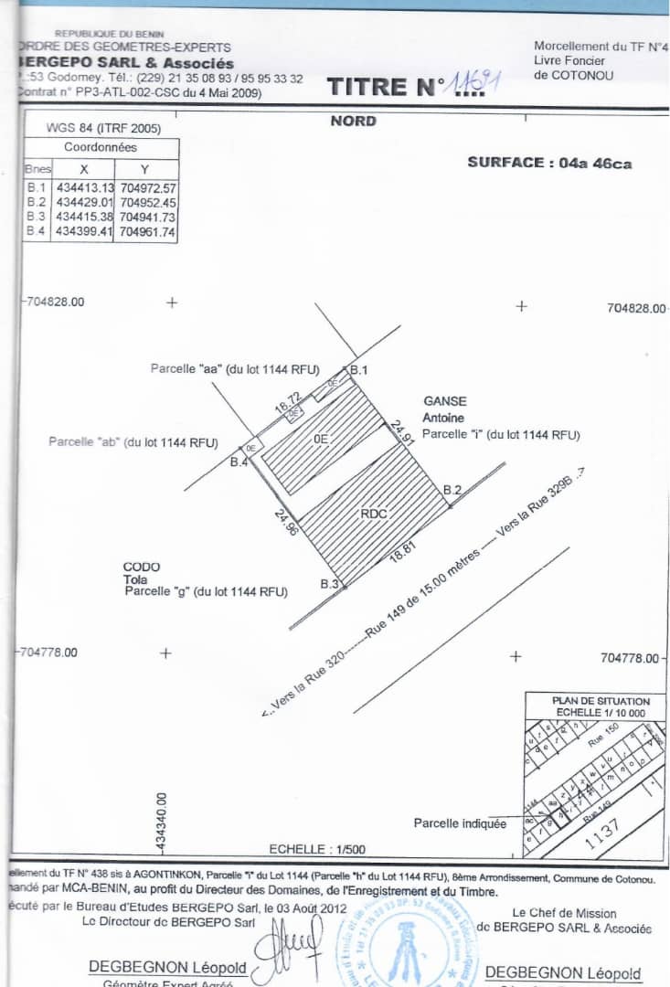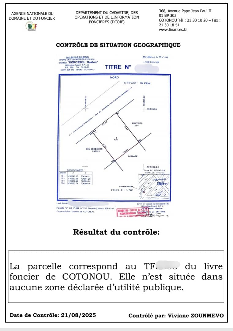 MISE EN VENTE DE PARCELLES À FIDJROSSÈ Nous mettons en vente pour le compte d'un propriétaire vivant et en pleine forme à fidjrossè dans la zone de l'ABERME et à 50m du Bar Restaurant KIRIKOU, 8 parcelles ensembles clôturées de superficie de 400 m² chacune. Documents Titre Foncier Global et Création du Titre Foncier Personnel en cours Mise à Prix 100.000.000 FCFA négociables par parcelle