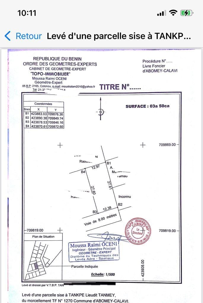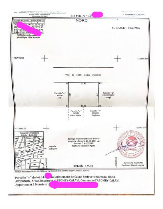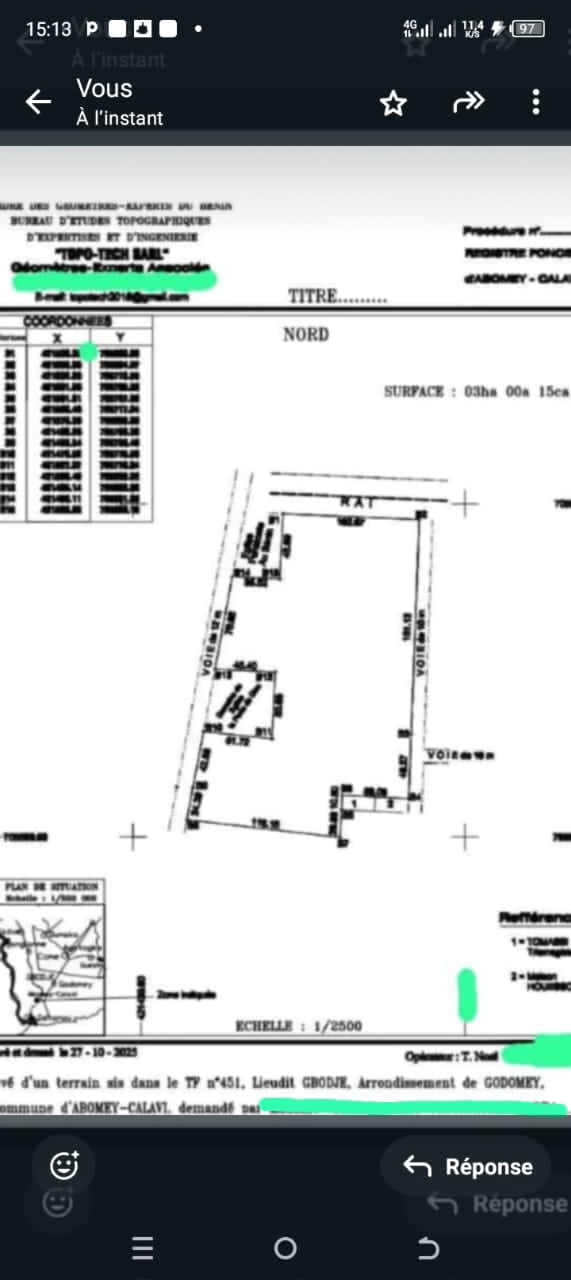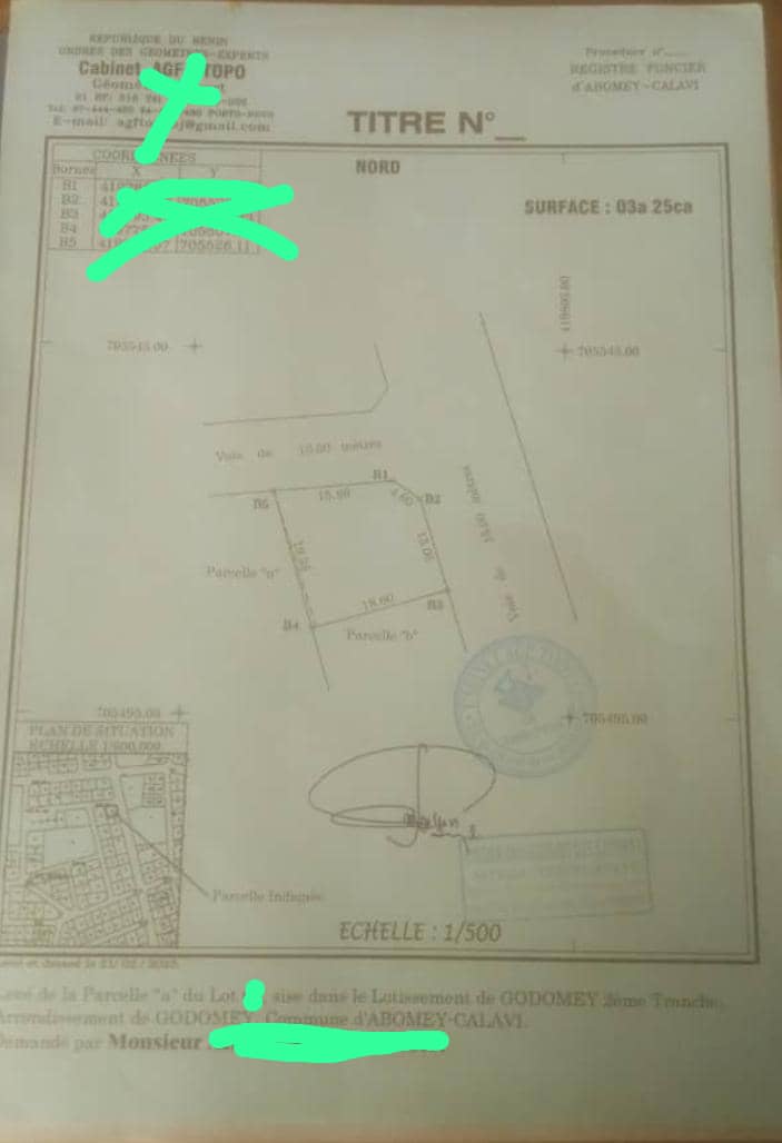 OPPORTUNITÉ IMMOBILIÈRE *PARCELLES SÉCURISÉES 350m² AVEC TF GLOBAL À HÊVIÉ ALASSAKOMEY* Nous vous proposons des parcelles morcelées de 350 m² sur TF global à calavi HEVIÉ dans la zone dit alansakomey avec vu sur le lac Toho à 1, 5 km du carrefour chez Arès et 5 min des Logements sociaux *Superficie Totale 3ha* *VENTE SÉCURISÉE DEVANT LE NOTAIRE* *PRIX 3.800.000 PARCELLE* TITRE DE PROPRIÉTÉ TITRE FONCIER GLOBAL 🏽NB1 *FRAIS DE VISITE 🏼 5.000 SUR RENDEZ VOUS AVEC LE CLIENT OBLIGATOIRE* 🏼 ️NB2 *L'ACQUÉREUR DOIT PAYER 5% DU PRIX D'ACHAT POUR LA COMMISSION IMMOBILIÈRE* NB3 *APPEL DIRECT OU APPEL WHATSAPP OBLIGATOIRE POUR RÉPONSE RAPIDE*