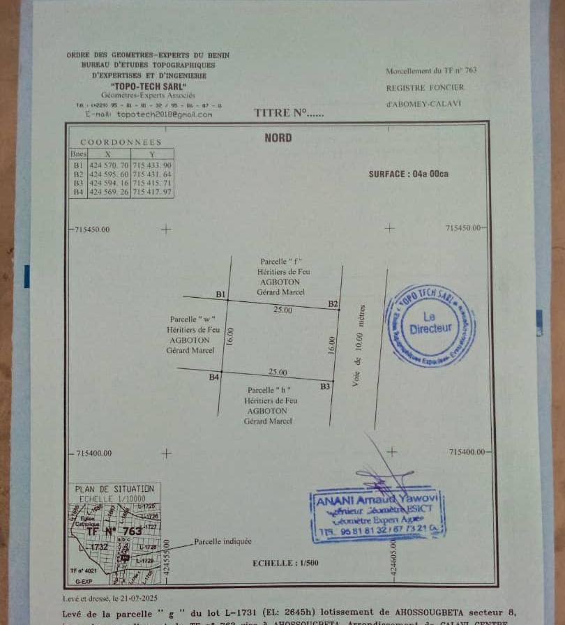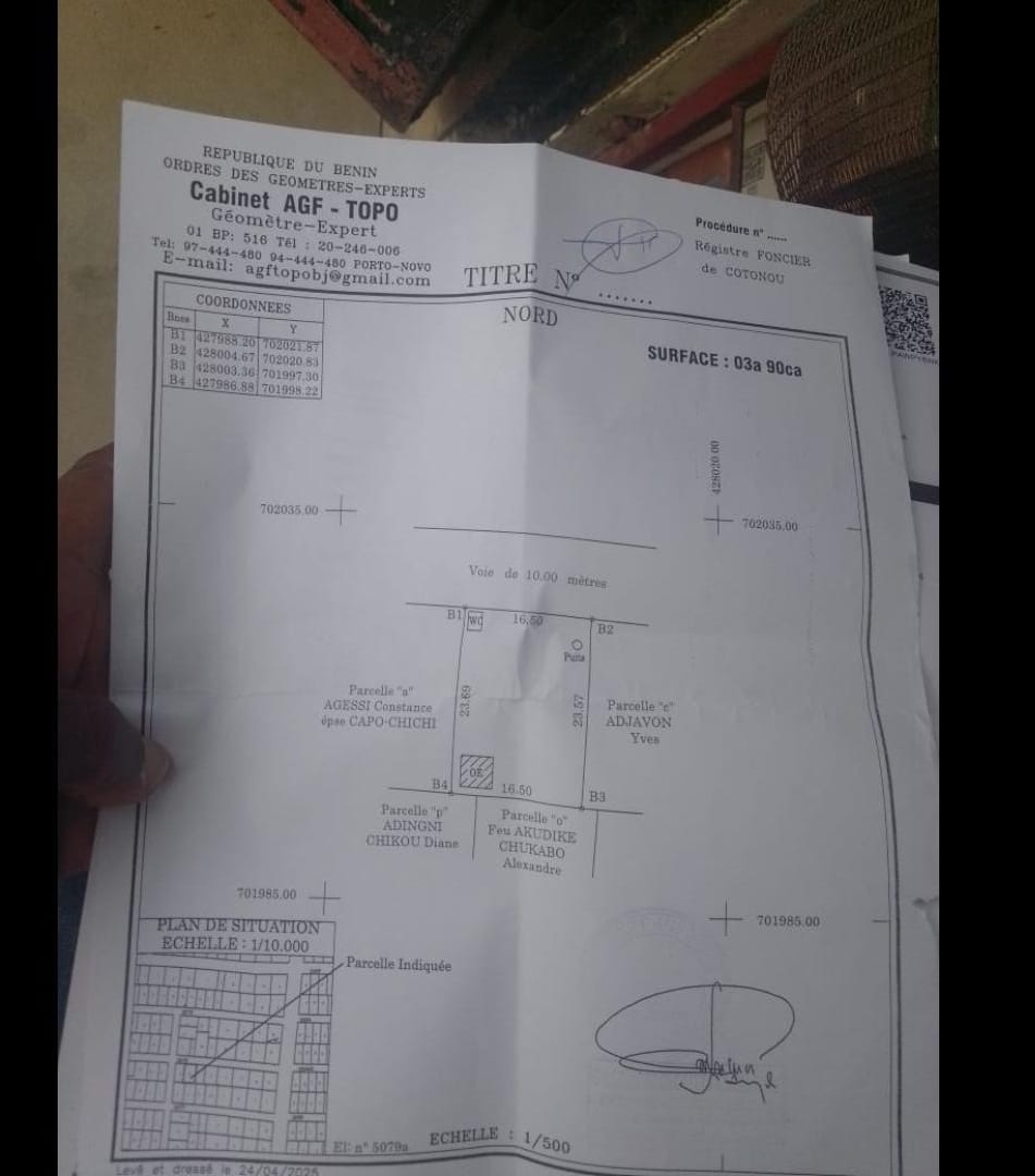 OPPORTUNITÉ IMMOBILIÈRE *DOMAINE SÉCURISÉ 1.742m² AU BORD DU GOUDRON AVEC TF PERSONNEL À CALAVI AKASSATO ADJAGBO* Domaine TF personnel de 1742m2 soit 5 parcelles selon le recasement dans la zone à vendre à Adjagbo au bord du goudron ( Cotonou Bohicon) dans la Zone de la pharmacie Fifamè très bien situé. *VENTE SÉCURISÉ DEVANT LE NOTAIRE* *PRIX 130.000.000* TITRE DE PROPRIÉTÉ TITRE FONCIER PERSONNEL 🏼 ️NB1 *L'ACQUÉREUR DOIT PAYER 5% DU PRIX D'ACHAT POUR LA COMMISSION IMMOBILIÈRE* 🏽NB2 *VISITE 🏼 5.000 SUR RENDEZ VOUS AVEC LE CLIENT* NB3 *APPEL DIRECT OU APPEL WHATSAPP OBLIGATOIRE POUR RÉPONSE RAPIDE*