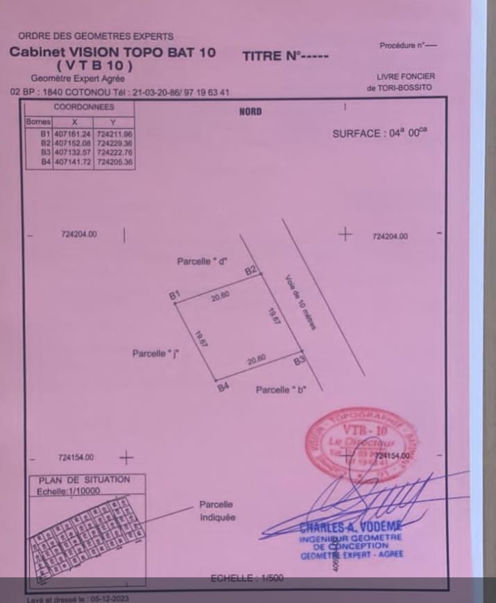 Parcelle bien situé avec électricité, école... Zone propre et habitable très proche du goudron sis à Tori Avamey. Doc Convention de vente et lévé Topographie Propriétaire vivant Prix 1.800.000 FCFA lax