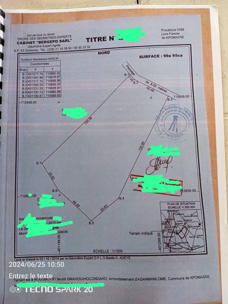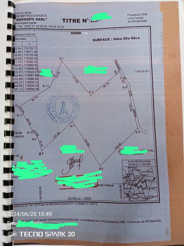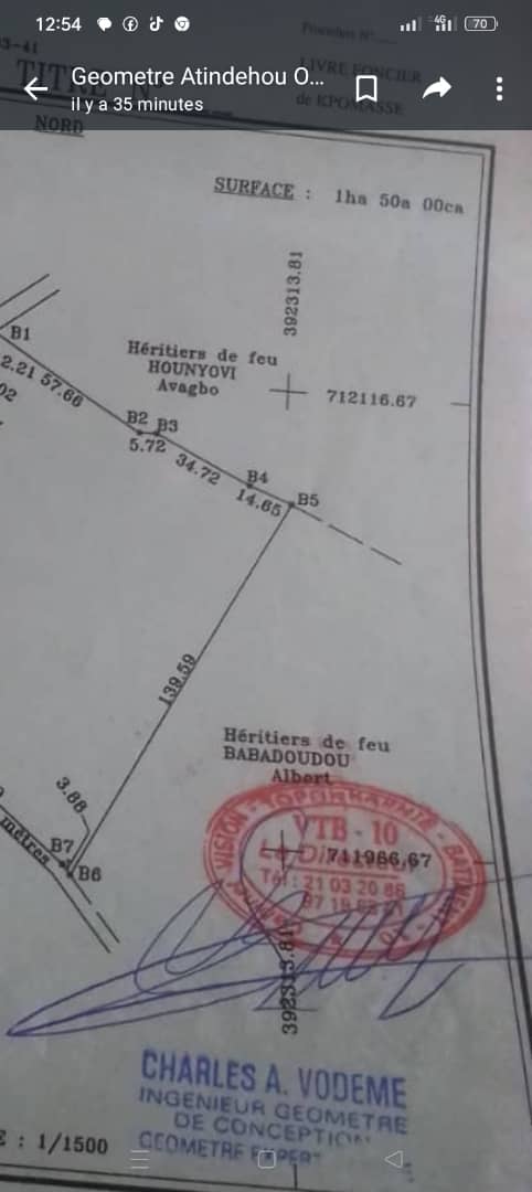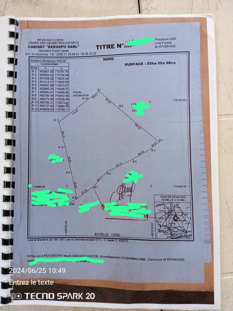 Un particulier met en vente à assogbenou kpevi avec TF Un domaine de plus de 19 hectares morcelé par des hectares dans la commune de kpomasse.le prix de vente par hectare est à 12 millions FCFA
