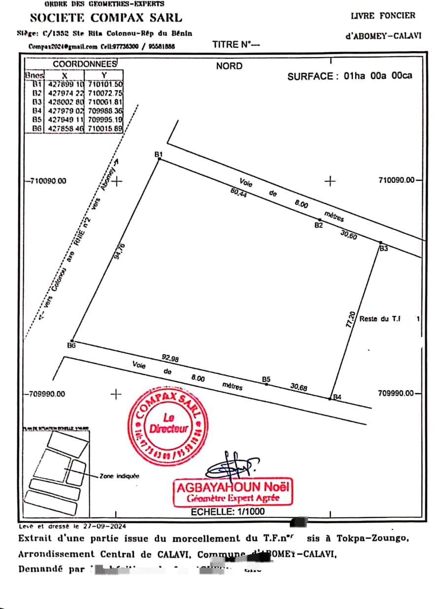 OPPORTUNITÉ IMMOBILIÈRE *DOMAINE SÉCURISÉ 01 HECTARE AU BORD DU GOUDRON AVEC TF PERSONNEL À CALAVI UAC BIDOSSESSI* Domaine de 01ha 00a 00ca sur Titre Foncier en vente à iita, e ...