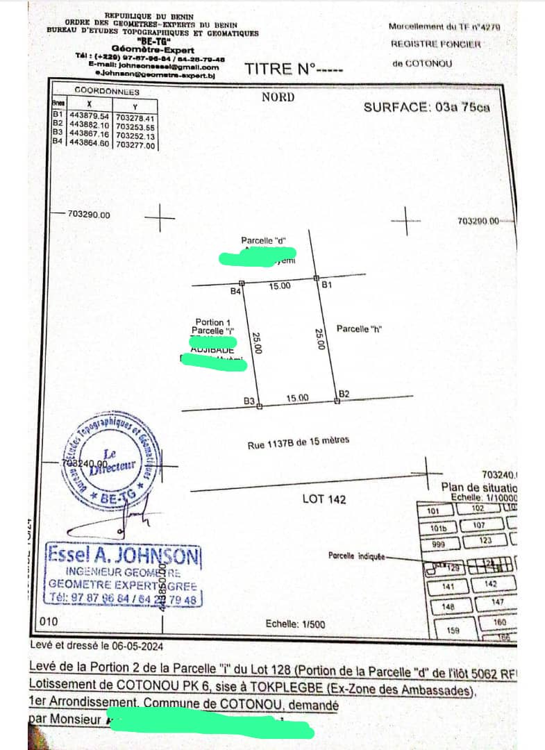 OPPORTUNITÉ IMMOBILIÈRE *PARCELLE SÉCURISÉE 428m² AVEC ATTESTATION DE RECASEMENT PROCHE DU GOUDRON À COTONOU GBÉGAMEY* À VENDRE COTONOU GBÉGAMEY 01 PARCELLE SÉCURISÉE RECASÉE 4 ...