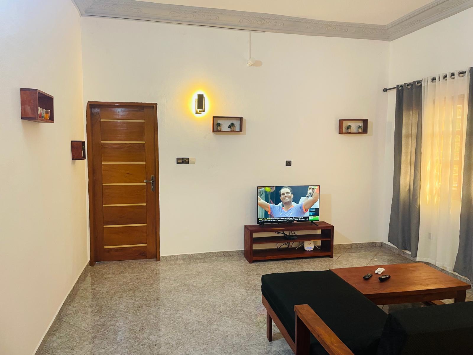 Un Refuge d’Élégance et de Sérénité à Calavi Zopah Votre Deux Pièces Idéal Bienvenue dans l'une des zones les plus résidentielles et paisibles du Grand Nokoué. Si vous prévoyez un séjour au Bénin et que vous recherchez l'équilibre parfait entre le calme d'un quartier de standing et la proximité des centres névralgiques de l'activité commerciale, cet appartement meublé de deux pièces est l’adresse qu’il vous faut. Situé au cœur du quartier de Calavi Zopah, ce logement n’est pas qu'un simple lieu de passage ; c’est une véritable oasis de tranquillité pensée pour offrir aux touristes et aux voyageurs internationaux une expérience de séjour inégalée. APPARTEMENT T2 (UNE CHAMBRE SALON) ENTRÉE PERSONNELLE WIFI GRATUIT CALAVI ZOPAH, BENIN, à cent mètres de l'école maternelle Saint ROMARIC, à moins de dix minutes de EREVAN CALAVI (SUPER U CALAVI)
