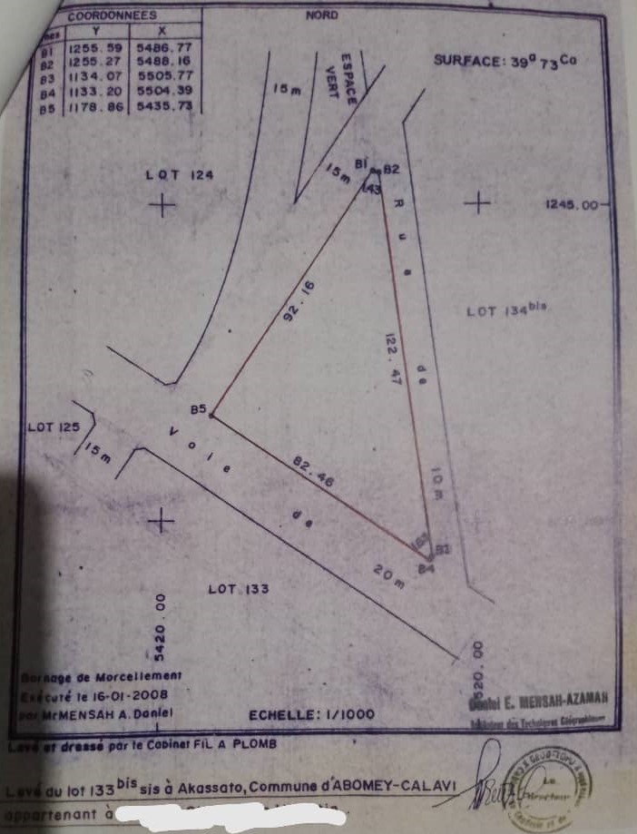 OPPORTUNITÉ IMMOBILIÈRE À AB CALAVI OUÈDO. Il est mis en vente une parcelle de 557m² à l'état des lieux au bord d'une grande voie en angle de rue à Ouèdo Aïdjedo Tokekanmey quelque mètre de l'EPP Adjagbo Centre 800m du CS JEAN PIAGET 3 Carrefour AGOUALAND et à moins de 2km du goudron kpota Ouèdo carrefour des logements sociaux yayi Talon. Documents Convention de vente et levée topographique. Prix 6.500.000f Négociable Commission acquéreur 5% Frais de visite 3000